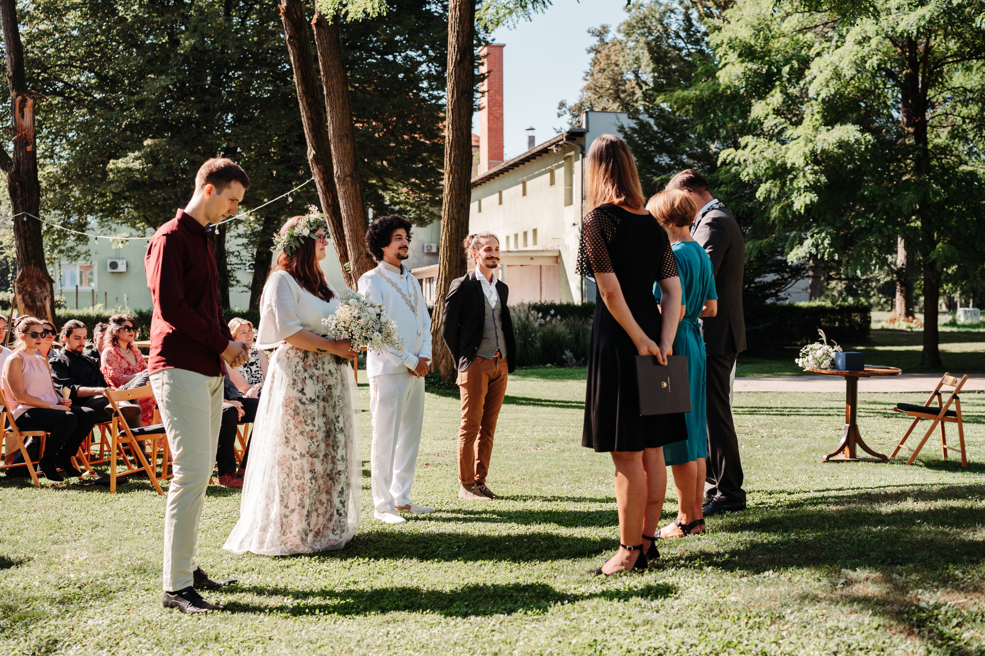 Hvaležna sem za ta dan in za vse najine goste. In hvaležna sem tudi sebi, da sem sledila svojim željam in ne temu, kako “bi moralo biti”. Imela sem namreč laneno obleko, cvetlično kronico, bila sem bosa in brez kakršnihkoli ličil. To so tudi stvari, glede katerih sem pričakovala kake očitke ali negodovanja, pa so se potem vsi ljudje izkazali za izjemno podporne. Kar še enkrat potrdi, da sem obkrožena s pravimi ljudmi, za kar sem tudi neizmerno hvaležna.