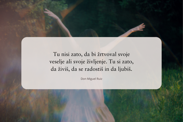 »V naši človeški naravi je, da uživamo v življenju, se igramo, raziskujemo, se radostimo in ljubimo.« (Ruiz, 87)